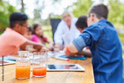 Lehrer und Kinder im Chemie Nachhilfe Ferienkurs