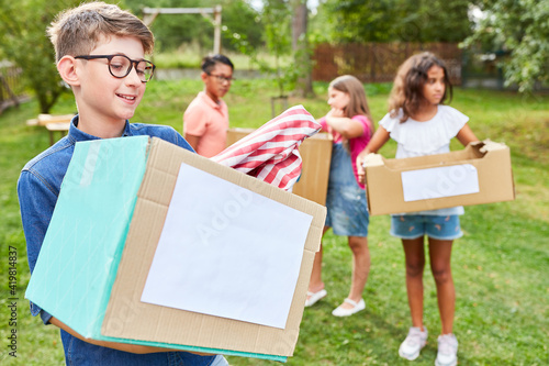 Kinder als ehrenamtliche Helfer bei Kleidersammlung
