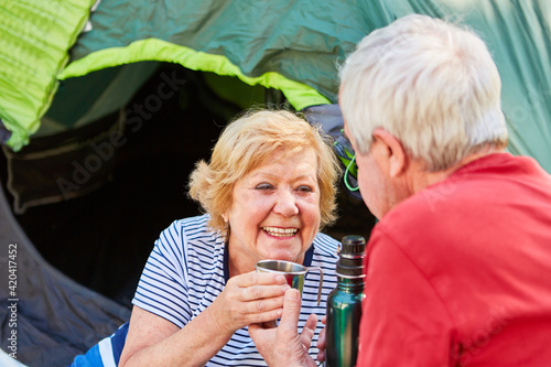 Paar Senioren trinkt morgens eine Tasse Kaffee