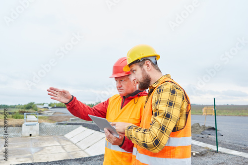 Bauleiter und Architekt mit Tablet PC bei der Planung