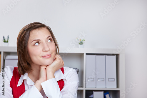 Nachdenkliche Frau schaut nach oben