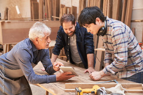 Handwerker Team in der Tischlerei am Computer