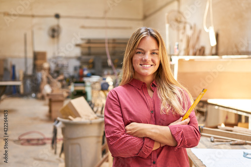 Frau als Handwerker Azubi in der Schreiner Lehre