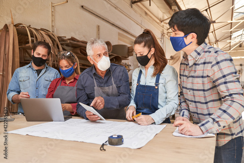 Carpenter team with face mask because of Covid-19