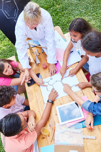 Gruppe Kinder bei Nachhilfe Ferienkurs für Chemie