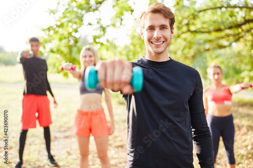 Young people exercising with dumbbells
