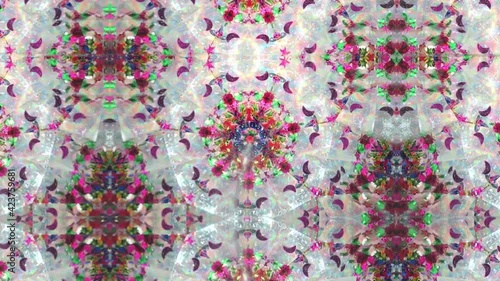 Shapes moving in a mirrored pattern in a kaleidoscope