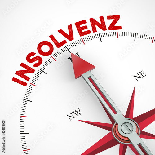 Kompass Pfeil zeigt auf Schriftzug Insolvenz