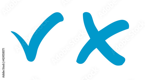 Häkchen und Kreuz Icons als Symbole für Wahl und Urteil