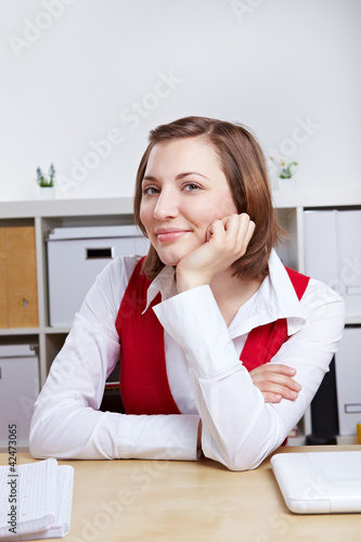 Geschäftsfrau mit Kopfschmerzen im Büro