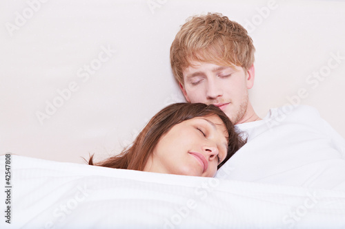 Junges Paar liegt im Bett