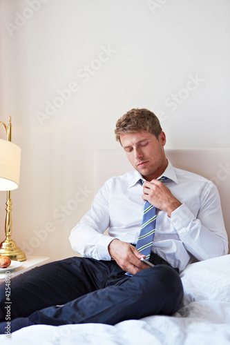 Erschöpfter Geschäftsmann lockert Krawattenknoten