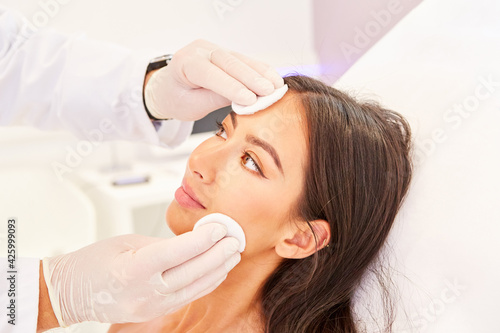 Frau bei professioneller Hautreinigung bei Kosmetiker