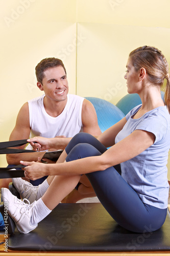 Trainer korrigiert Körperhaltung bei Frau