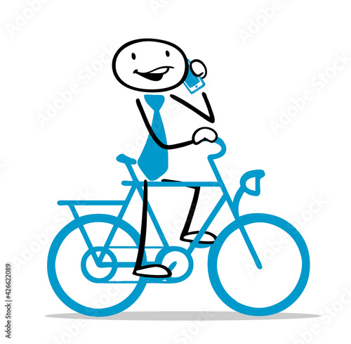Cartoon Mann beim Telefonieren beim Fahrrad fahren