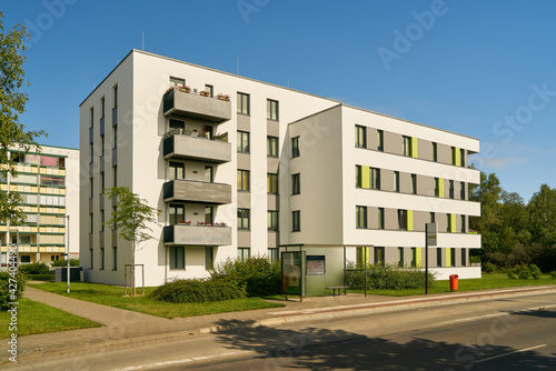 Wohngebiet mit Mehrfamilienhaus in Plattenbausiedlung