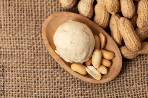 Kugel Erdnusseis oder Erdnussbuttereis mit Erdnüssen