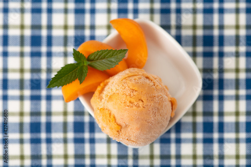 Fresh scoop of apricot ice cream with apricots