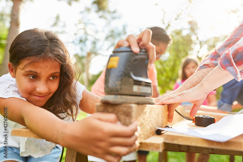 Kinder zeichnen und basteln zusammen im Ferienlager