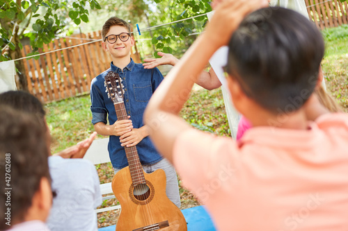 Kinder schauen zu bei Talentshow Auftritt mit Gitarre