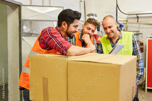 Fachlagerist und Kollegen mit einer Paket Lieferung
