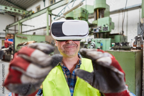 Arbeiter mit Virtual Reality Brille bei einer Simulation