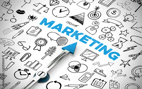 Marketing Konzept mit Kompass und Schriftzug