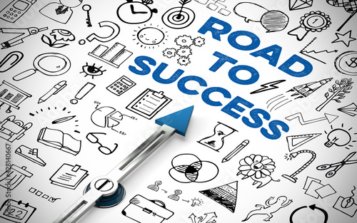 Road to Success Erfolg Konzept mit Kompass und Icons