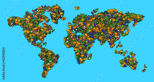 Cartoon Lebensmittel als Welt oder Weltkarte