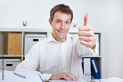 Geschäftsmann mit Kreditkarte hält Daumen hoch
