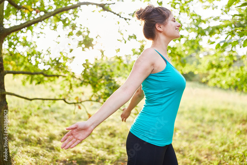 Gruppe macht Tai Chi im Fitness Kurs in der Natur
