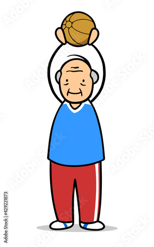 Cartoon Ärztin unterstützt Frau bei Seniorenturnen mit Medizinball