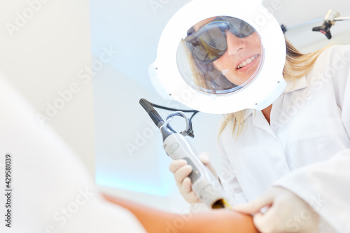 Junge Frau mit Schutzbrille bei der Laserepilation