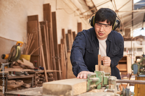 Craftsmen as carpenter master planing wood