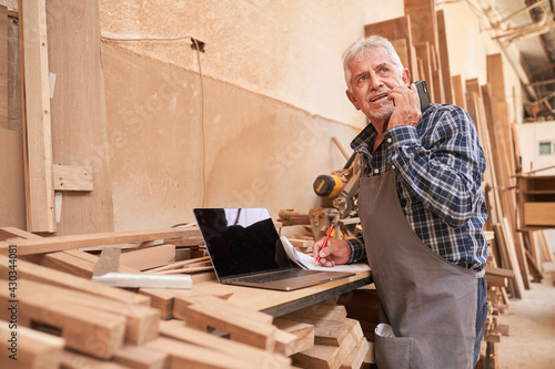 Handwerker Frau in Werkstatt mit Tablet Computer