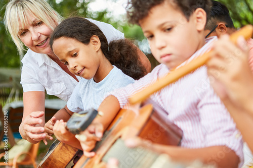 Kinder schauen zu bei Talentshow Auftritt mit Gitarre