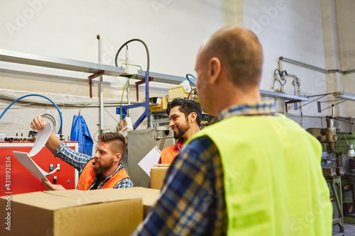 Kommissionierer und Kollegen prüfen Kartons im Versand