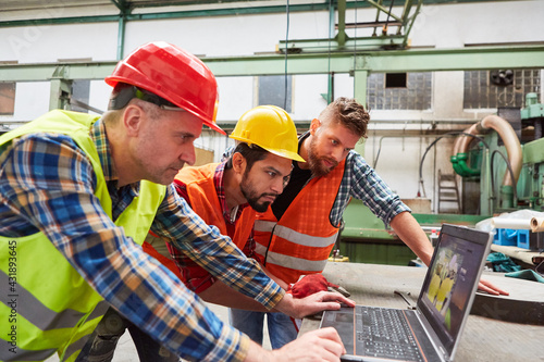 Arbeiter Team am Laptop Computer plant einen Auftrag