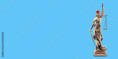 Blinde Justitia mit Augenbinde als Recht Konzept mit Textfreiraum
