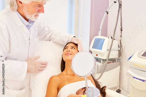 Junge Frau mit Schutzbrille bei der Laserepilation