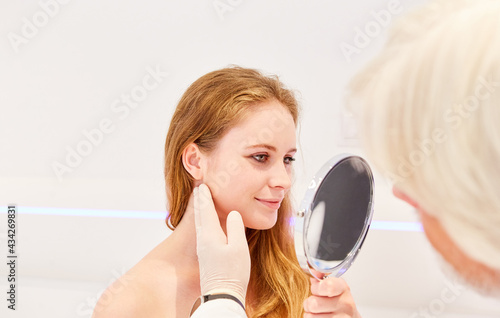 Ärztin bei Beratung von Patientin vor Hautstraffung