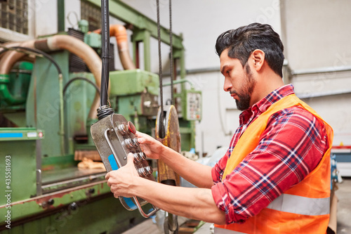 Arbeiter bedient die Steuerung für einen Kran