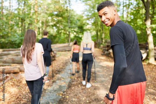Gruppe junger Leute beim Nordic Walking