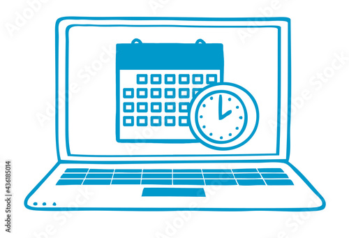 Spritze auf Computer als Coronavirus Impftermin Konzept