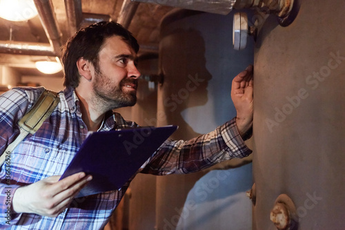 Heizungsmonteur kontrolliert den Brennwertkessel