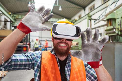 Arbeiter mit VR-Brille in einer Fabrik Halle der Zukunft
