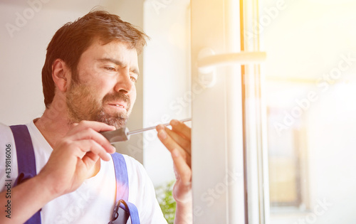 Handwerker vom Fachbetrieb beim Fenster justieren