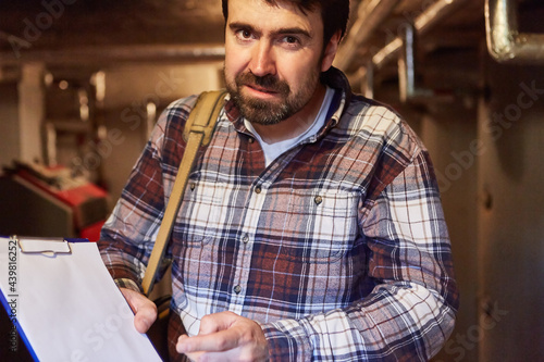 Handwerker mit Checkliste im Gespräch mit Kundin