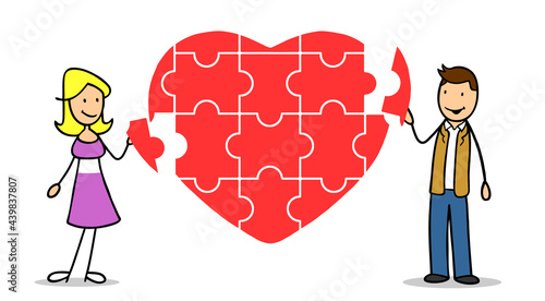 Paar hält Puzzlestücke zu Herz als Beziehung Konzept