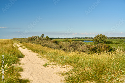 Strand am Meer mit Zugang durch Dünen im Sommer